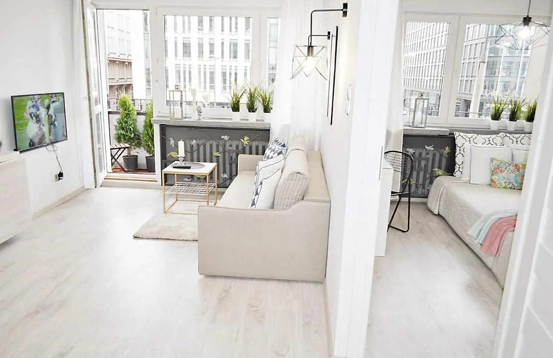 Die 40 m² große Ferienwohnung Golden View Warschau befindet sich im Stadtviertel Centrum von Warschau, in 25 Gehminuten Entfernung vom Pole Mokotowskie. Gäste können WLAN sowohl für geschäftliche als auch für private Zwecke nutzen.